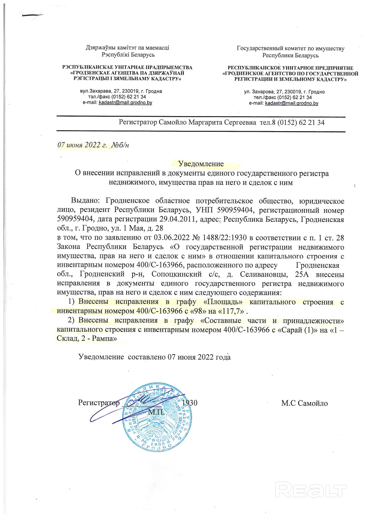 Объект принадлежит на праве собственности Гродненскому областному потребительскому обществу.