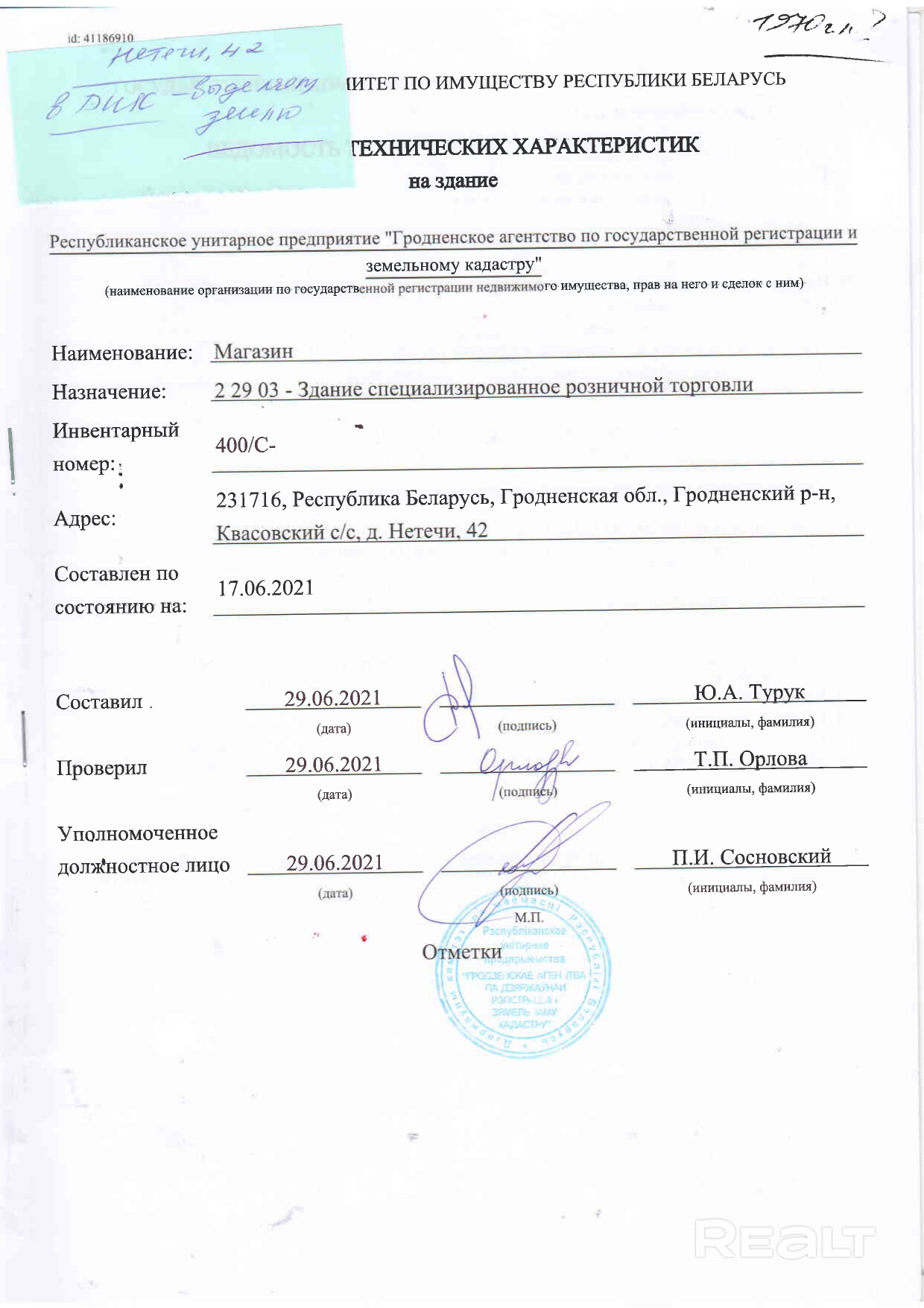 Аукцион 23.12.2025 Магазин в д.Нетечи,42, Квасовский с/с, Гродненский район