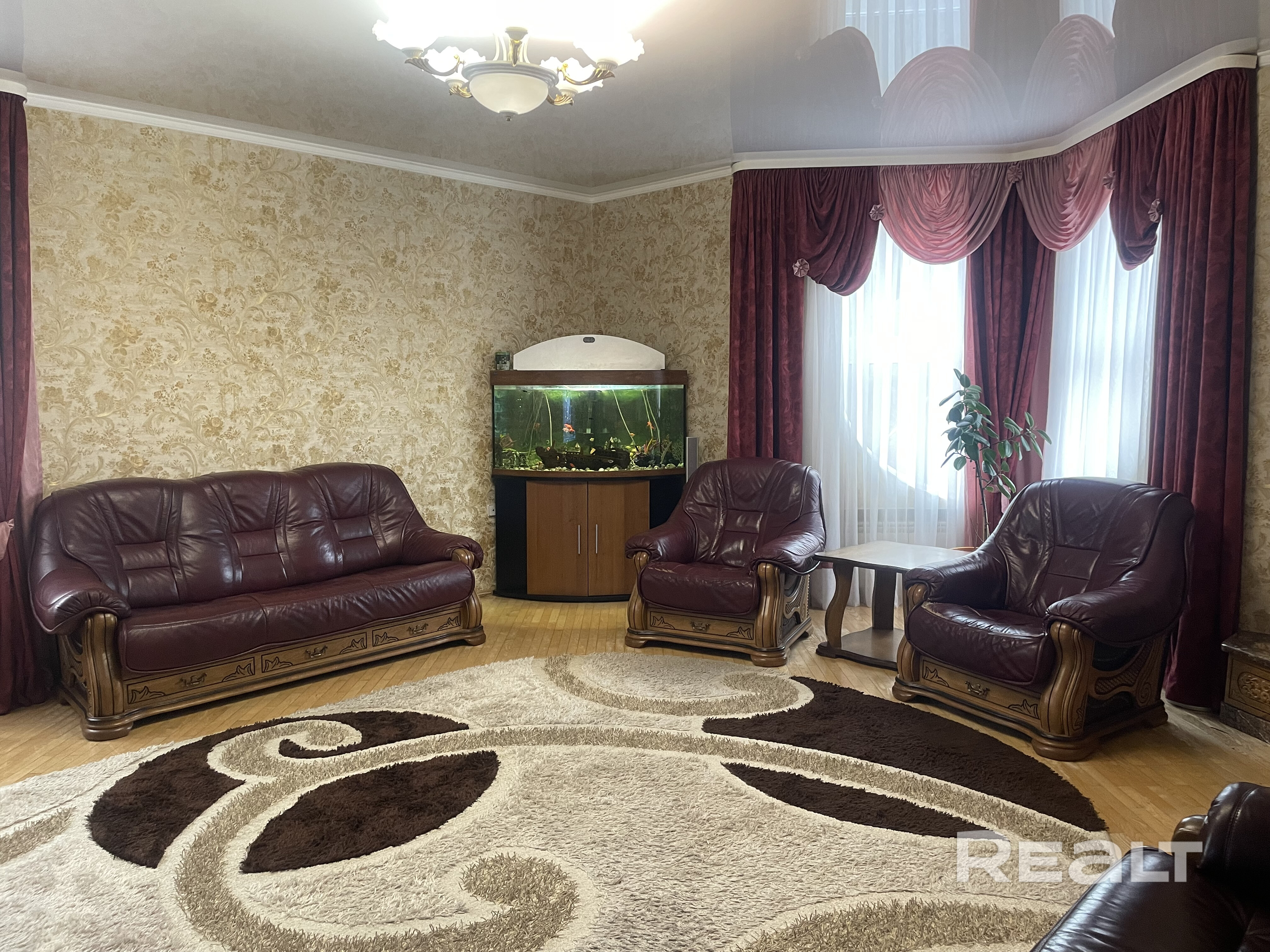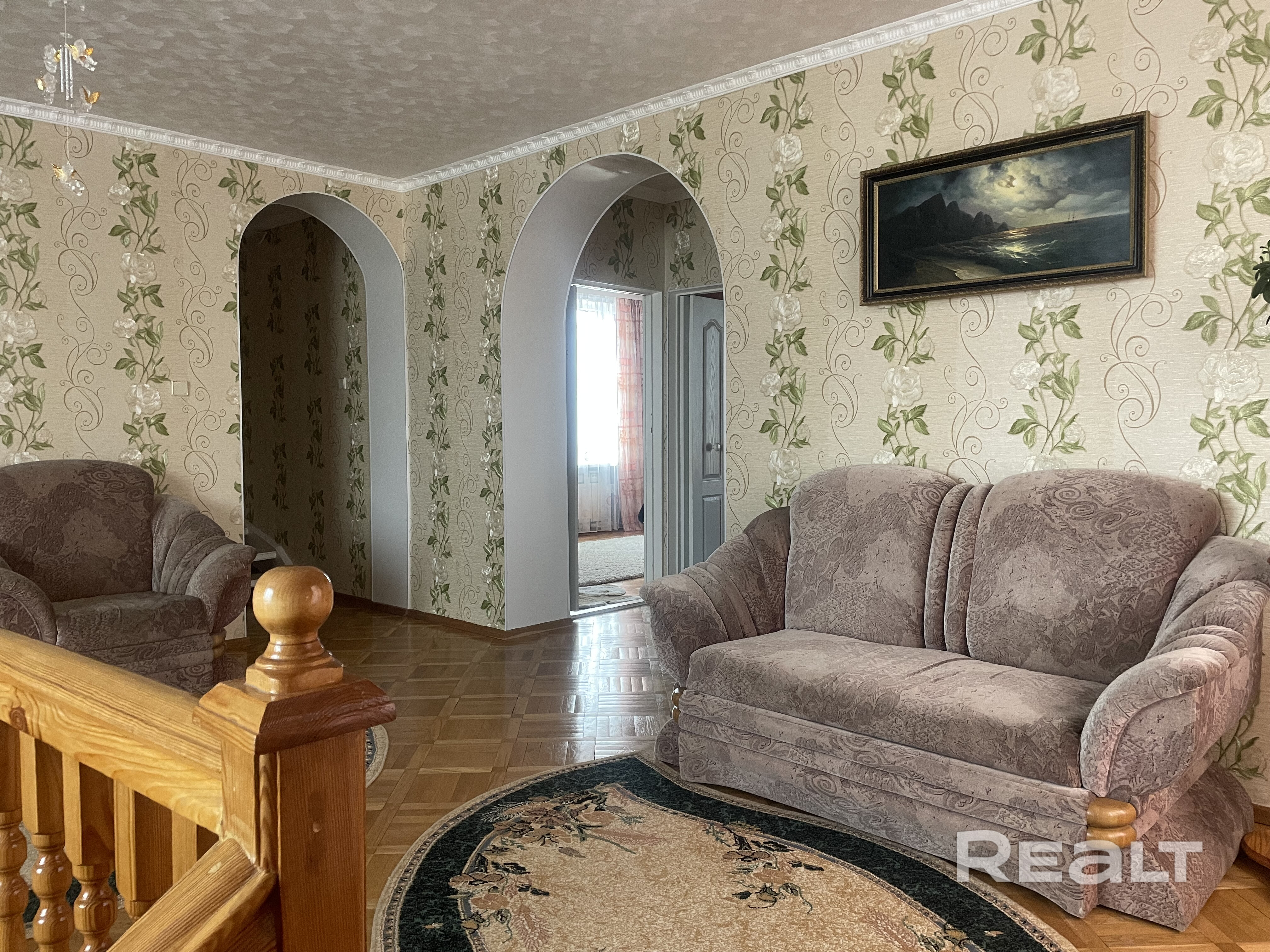 Дом строили для себя, для комфортной семейной жизни, поэтому стройматериалы, мебель и предметы интерьера использовали самые лучшие. В комнатах на полу - паркет, все три санузла и кухня - полы из керамической плитки с подогревом. В доме действующий камин, бильярдный стол, тренажерный зал. На всех окнах стеклопакеты со специальным отражающим покрытием. Дом продается почти со всей мебелью и предметами интерьера в связи с переездом хозяев. В доме пять комнат ( площади 34,9м2, 20,4м2,19,7м2 17,9м2,16,1м2 ) расположенные на двух этажах, подвал и чердак. Все 100% готовности и в отличном состоянии. Дом полностью готов к проживанию - "заезжай и живи”. Дом подходит для спокойной неспешной жизни с наслаждением вблизи природы.