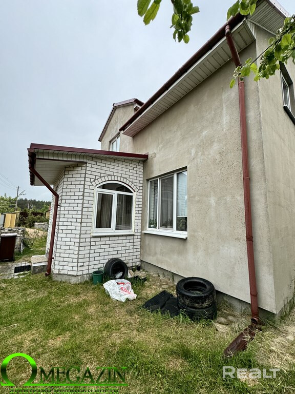 Продается уютный жилой дом мансардного типа по ул. Полоцкая. Дом построен и сдан в эксплуатацию в 2014 году, материал стен - утепленные и оштукатуренные газобетонные блоки, крыша - крашеный шифер. По проекту гараж (30 кв.метров) входит в общий периметр дома, в котором проведено общее отопление дома посредством двухконтурного газового котла Bosh. В доме четыре просторные комнаты, кухня, гардеробная (6 кв.метров), два санузла (1,6 и 7,7 кв.метров) и большой холл. Везде выполнен отличный ремонт с использованием качественных отделочных материалов. На участке в 10 соток расположена большая хозпостройка с сараем и планируемой баней под одной крышей с большим запасом строительных материалов. Также имеется декоративный пруд с рыбками, плодовый сад, зона барбекю, огород. Удобное расположение дома вблизи трассы Лида-Бердовка позволяет без проблем добраться до центра города общественным транспортом при отсутствии автомобиля. Ближайший магазин с товарами первой небходимости в Новоселках, АЗС "Беларуснефть" в паре минутах ходьбы.