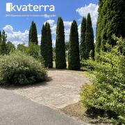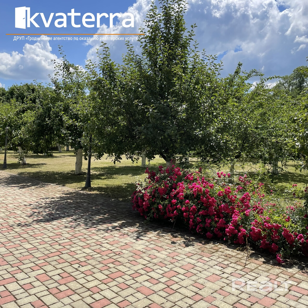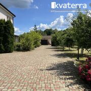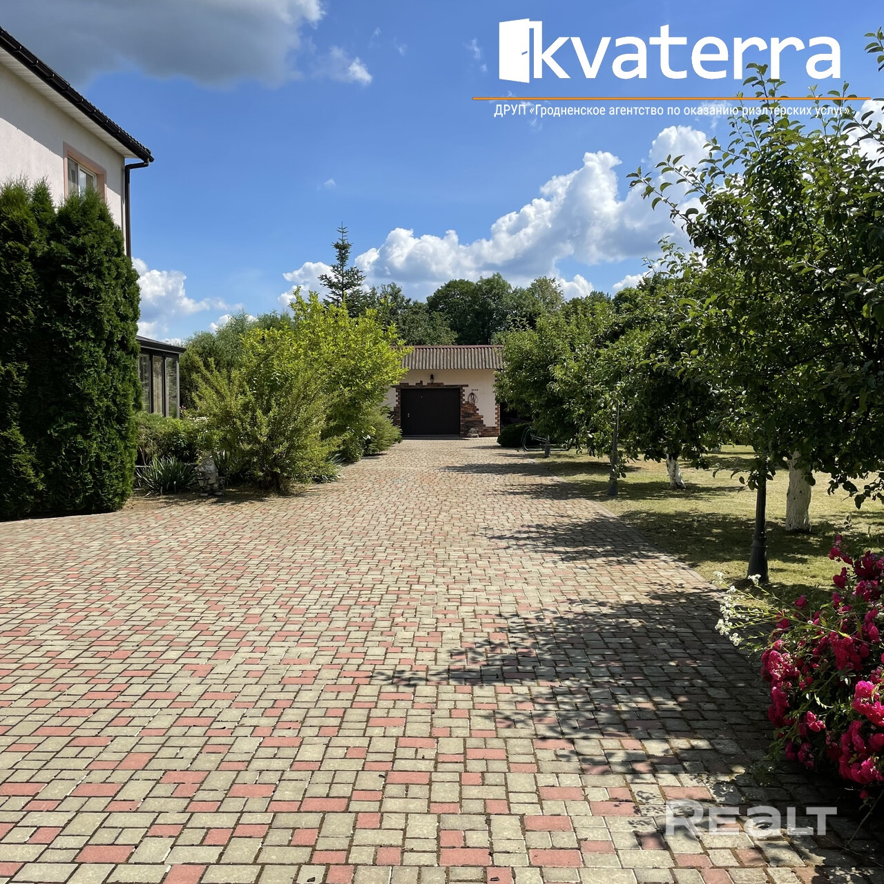 Участок ровный, огорожен, вымощен плиткой.