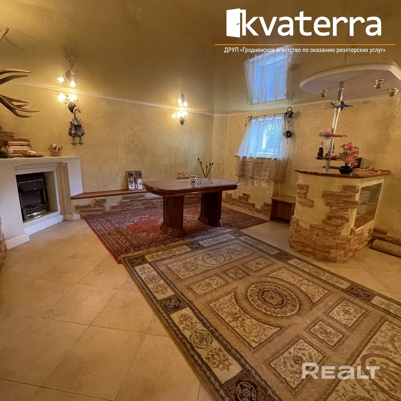 Лаунж-зона с барной стойкой в подвале.