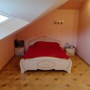 На первом этаже расположены: гостиная со вторым светом, кухня площадью 14,3 м2 со встроенной техникой (варочная панель, духовой шкаф, посудомоечная машина), спальня, постирочная с окном, сан узел с душевой кабиной. В прихожей и тамбуре установлены вместительные гардеробные системы фирмы Komandor. Лестница на второй этаж на металло-каркасе, ступени и перила из массива дуба. На втором этаже три просторные спальни, кладовая с пунктом управления контурами теплых полов, в ванной комнате установлены джакузи, раковина, унитаз и биде.