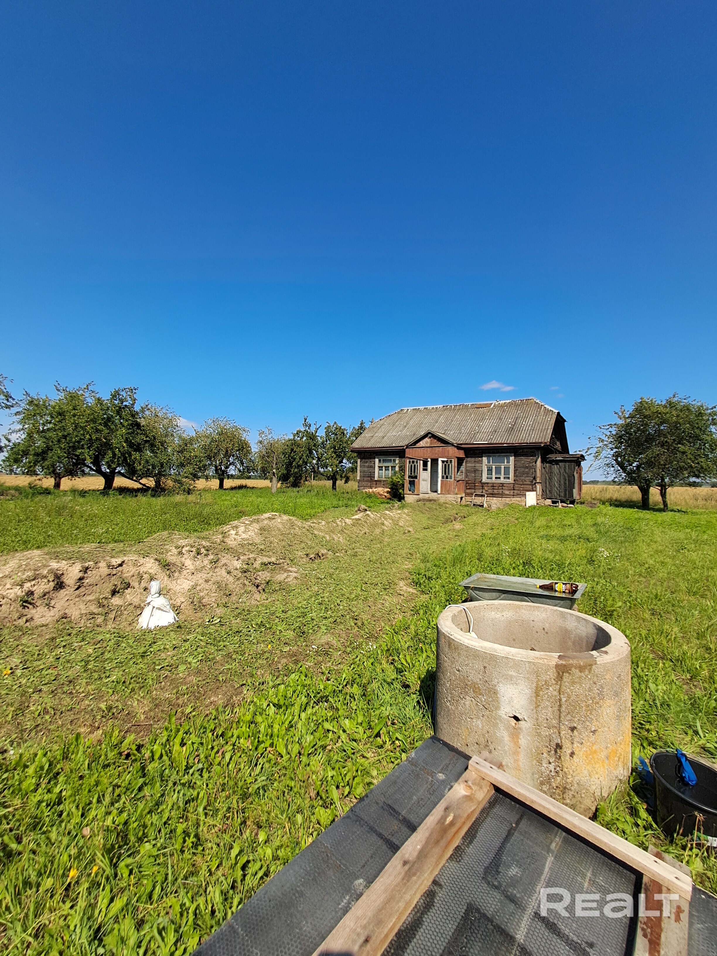 Есть яблоневый сад за домом и конюшней. Очень хороший вариант для желающих разводить лошадей, и другого вида животных, также отличный вариант для агроусадьбы. Очень атмосферное место.