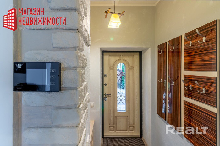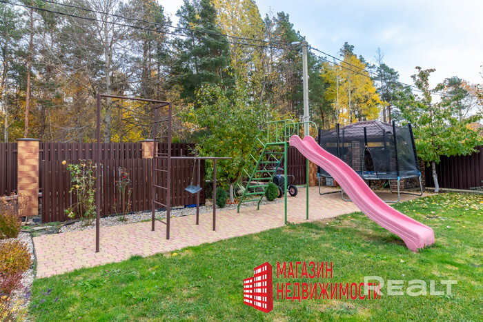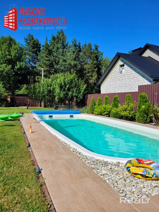 На первом этаже жилого дома расположено: гостиная площадью 24,3 кв.м., коридор – холл 16,4 кв.м., кухня площадью 17 кв.м., произведена перепланировка помещение под гараж переведено в жилое помещение площадью 22,4 кв.м., гладильная площадью 8 кв.м., топочная 3,8 кв.м. и сан узел площадью 3, кв.м. На втором мансардном этаже три жилые комнаты: площадью 28,3 кв.м, 24,6 кв.м., 22,3 кв.м., сан узел площадью 18,3 кв.м., лестница. в доме не много произведена перепланировка: гараж переоборудован в коридор со встроенными шкафами-купе, увеличена площадь кухни за счет объединения с террасой с окнами в пол до 17 кв.м. Дом продается с мебелью или по обсуждению. Отличное местоположение: асфальтированный подъезд, лесной массив с одной стороны улицы, хорошие соседи. Звоните в Магазин Недвижимости + 375 29 86 733 86, риэлтер Нина.