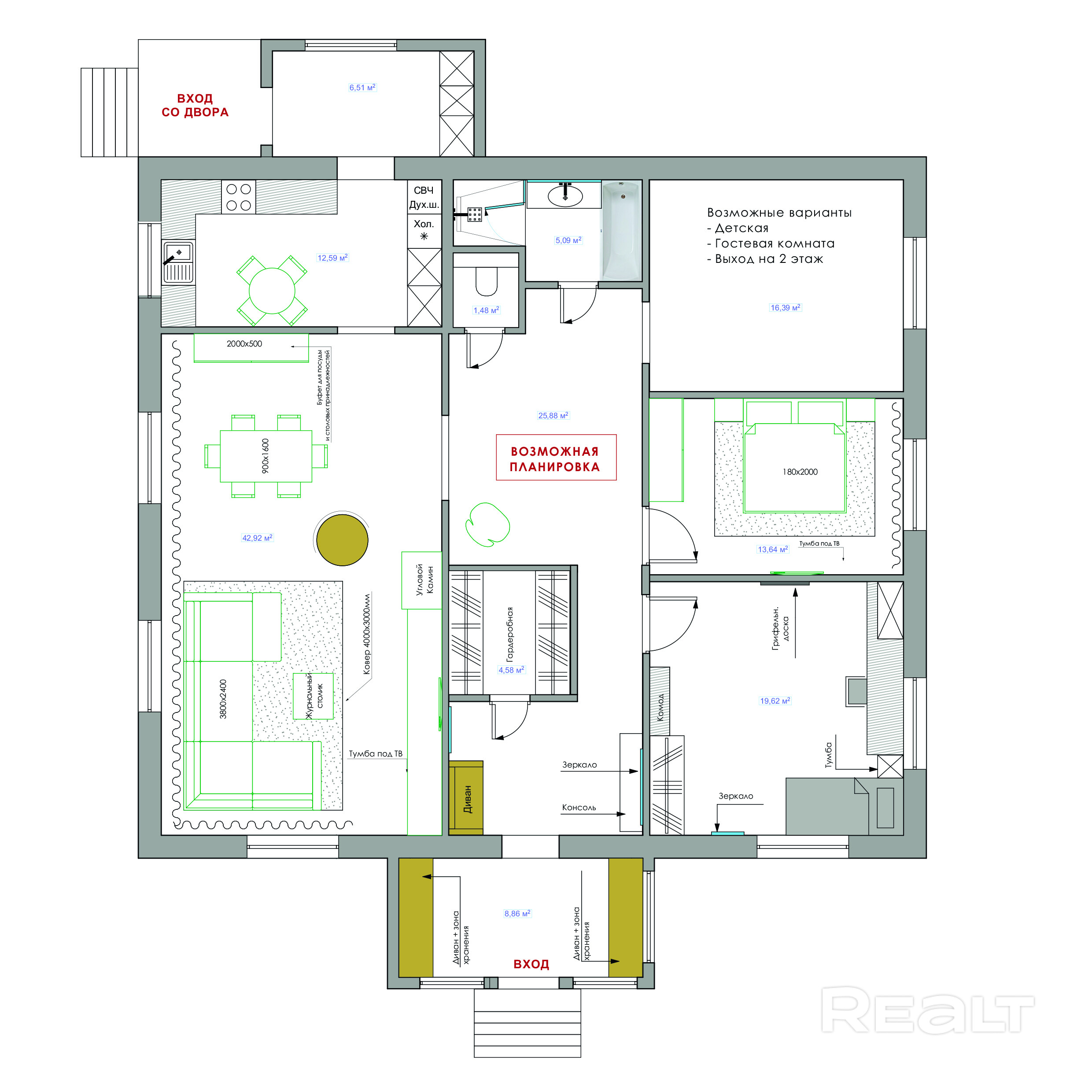 - Площадь участка