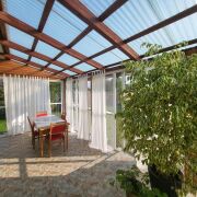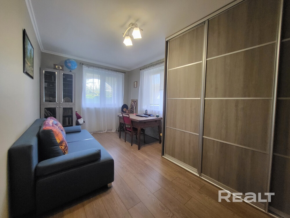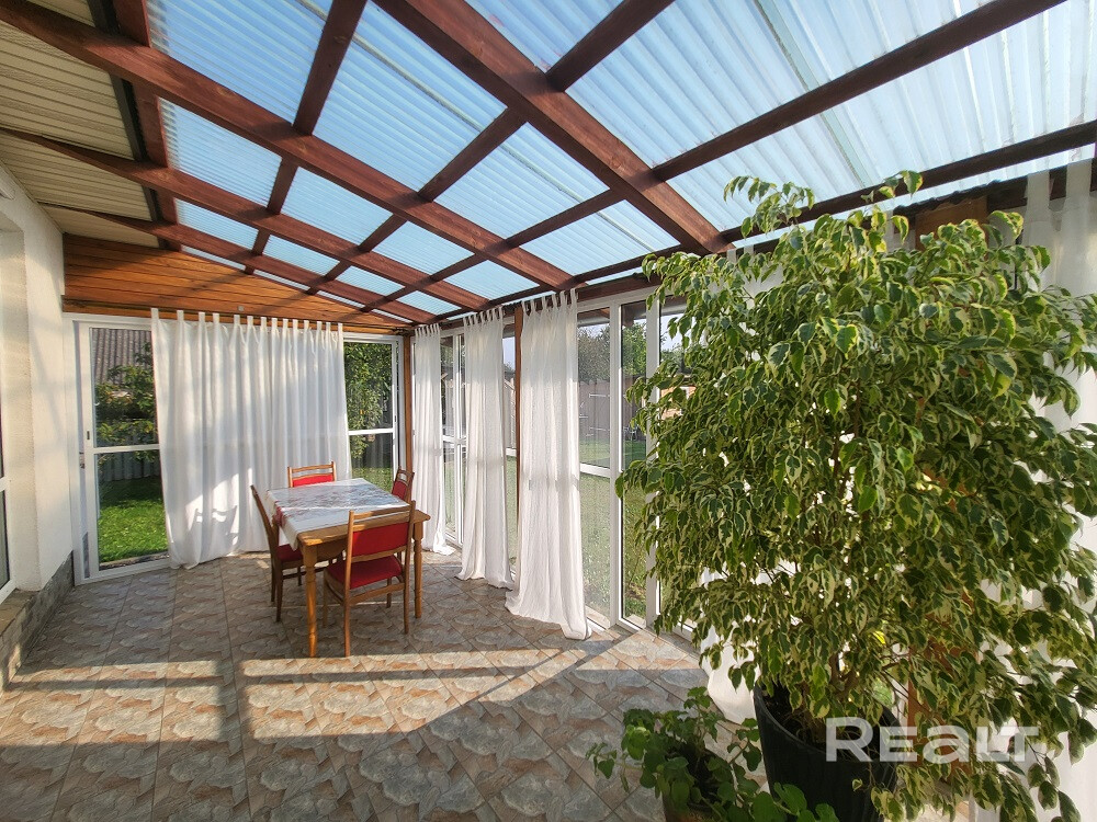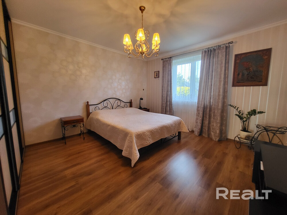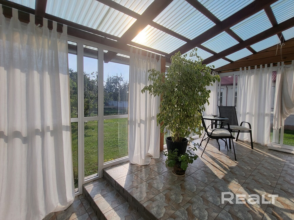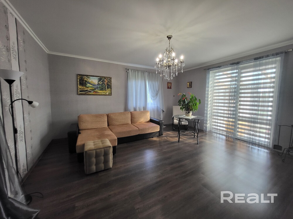 Три раздельные комнаты и просторная кухня, раздельный санузел, топочная, отапливаемый гараж площадью 23.4 м.кв. Большая терраса с видом на прилегающий участок.