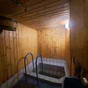 - баня (с комнатой отдыха и купелью, с санузлом, с душем, с навесом, сделана из бревен)