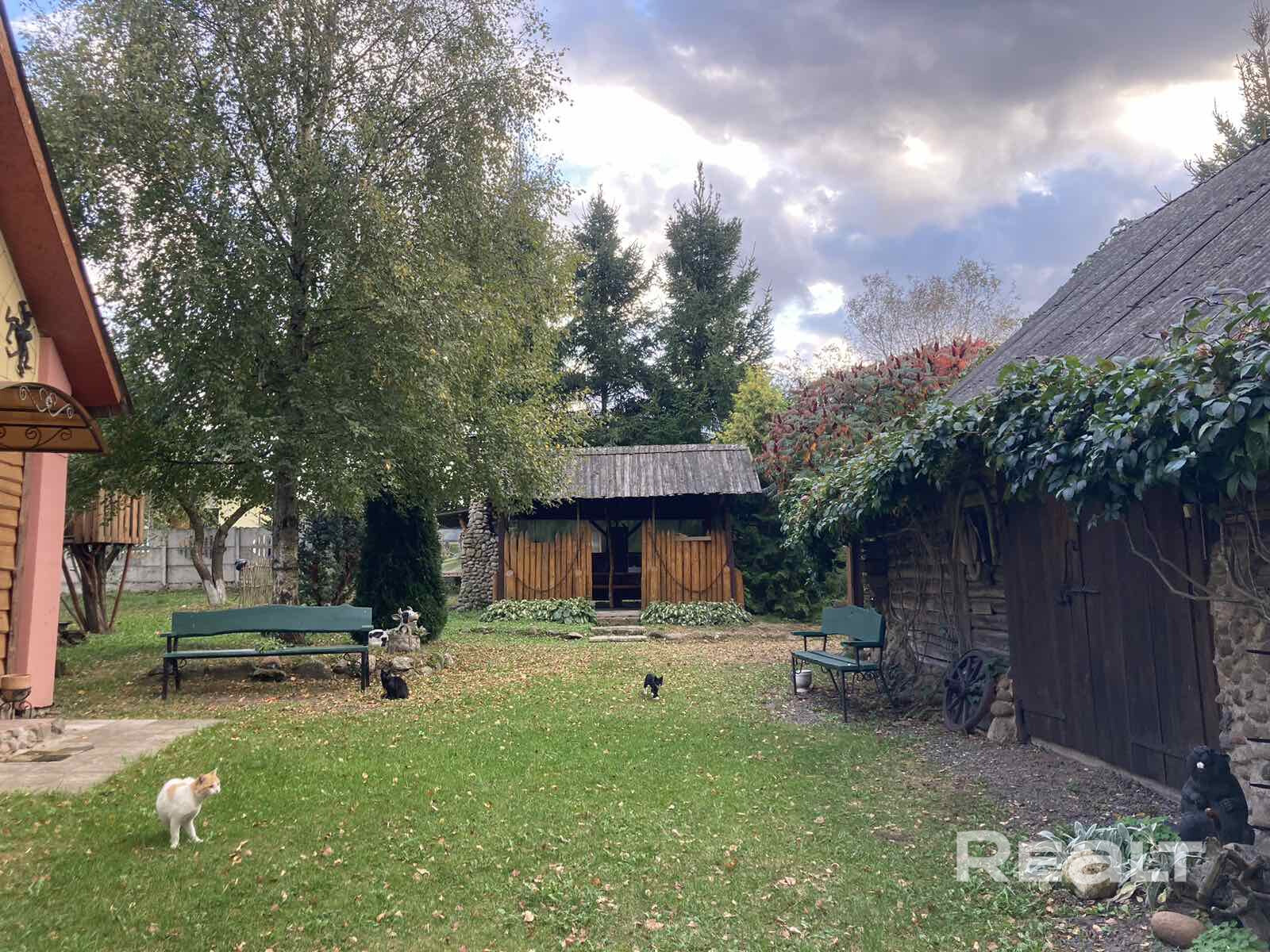 Агроусадьба стилизована под белорусскую избу, с баней, рыбалкой, детской площадкой, экспозициями, беседками, мангалом, автостоянкой, кухней, домиком для изготовления пиццы, малыми скульптурными формами с возможностью размещения до 15 человек. Находится на окраине деревни, соседей рядом нет. Рядом с агроусадьбой раскопки средневекового Городища 10 века. Хороший асфальтированный подъездной путь, большая территория около дома ( 0.2356 га). Все это обеспечит комфортное проживание либо занятие бизнесом. Городские маршрутки ходят регулярно. Приезжает автолавка.