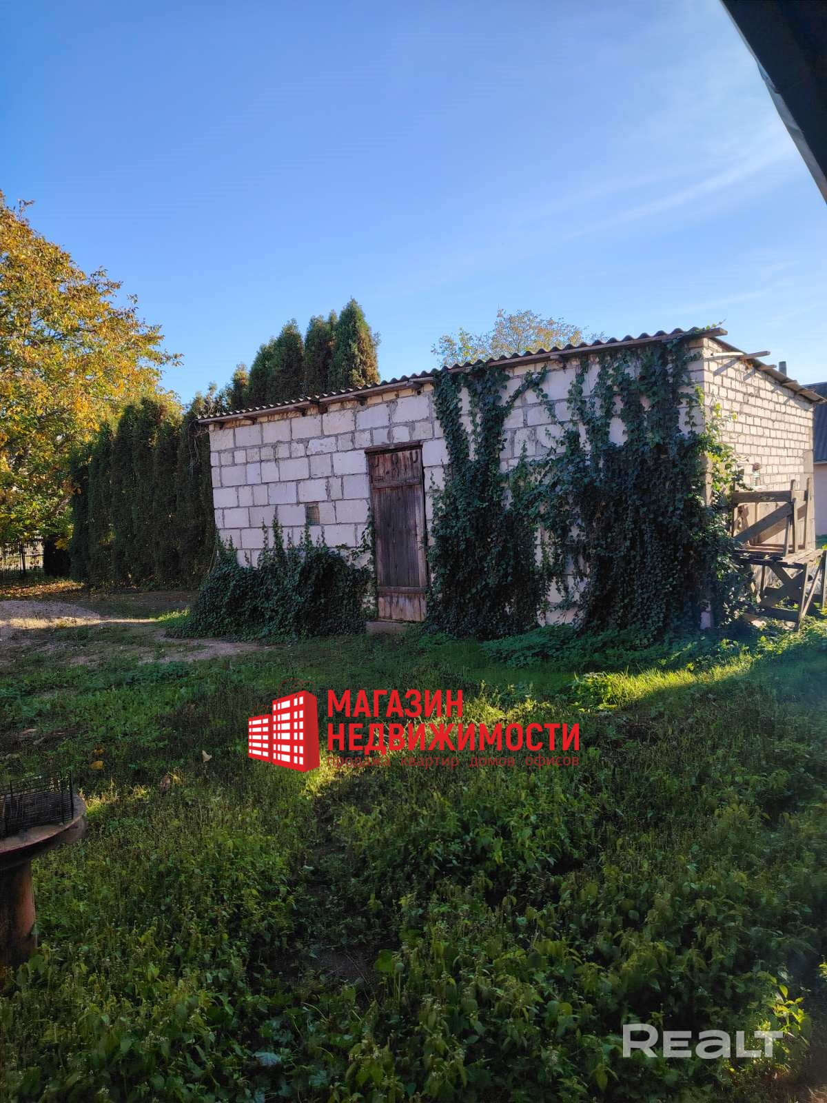Есть плодовые деревья и кустарники, хозпостройки.