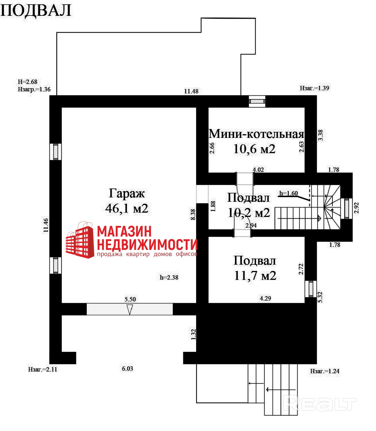 Характеристики дома: общая площадь жилых помещений – 221,9 м2, жилая площадь – 77,2 м2, кухня-студия – 58,9 м2, высота потолка 2,88 м. Дом состоит из двух полноценных этажей, оборудован двумя террасами 7,9 м2 и 5 м2. На цокольном этаже устроены гараж со смотровой ямой, мини-котельная и подвал. В доме установлена монолитная двухмаршевая лестница, которая ведет из подвала до второго этажа. Количество жилых комнат – 3. В доме 2 санузла, которые расположены на каждом жилом этаже. Рациональная планировка пространства обеспечит комфортное проживание для всей семьи. В кухне-студии предусмотрены место для камина и выход на террасу.