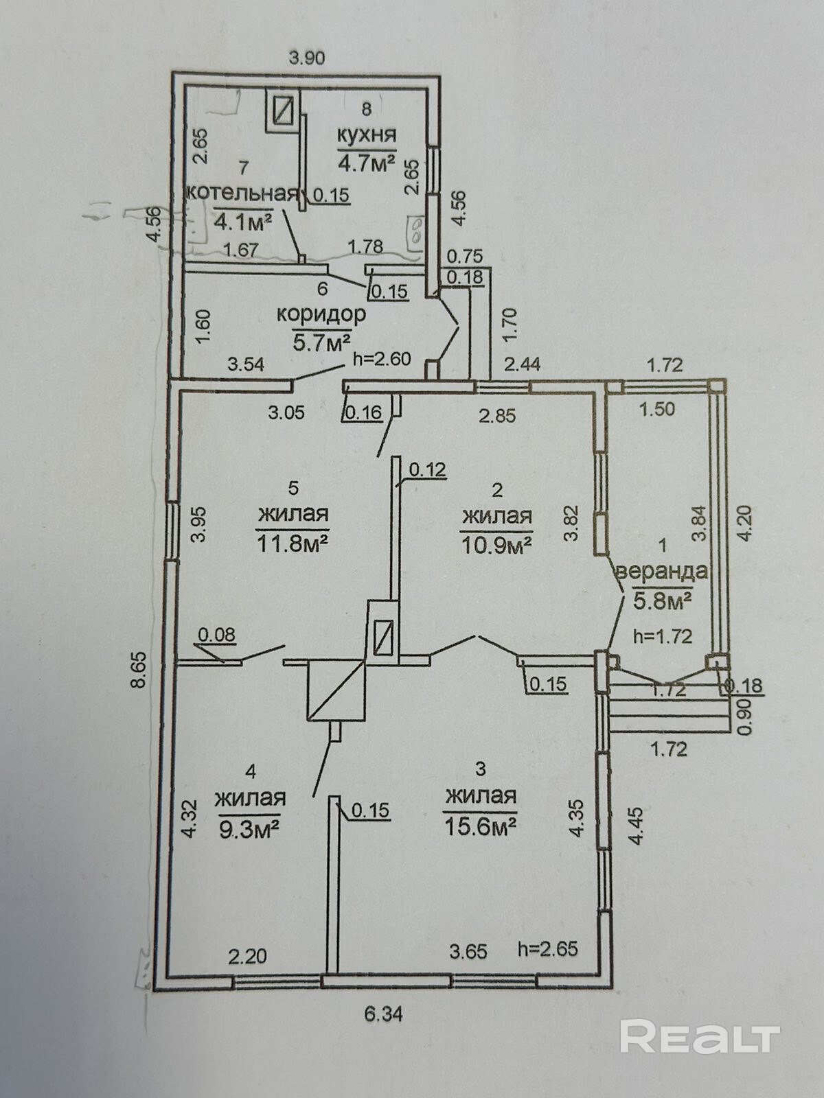 В доме четыре изолированные комнаты, кухня, коридор, совмещенный санузел, веранда.
