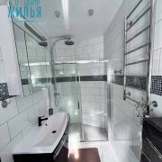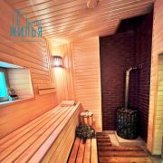 Общая площадь бани составляет 49 м2. Напольное покрытие – керамическая плитка, стены обшиты вагонкой из сосны. Оборудован санузел, душ, парная, комната отдыха.
