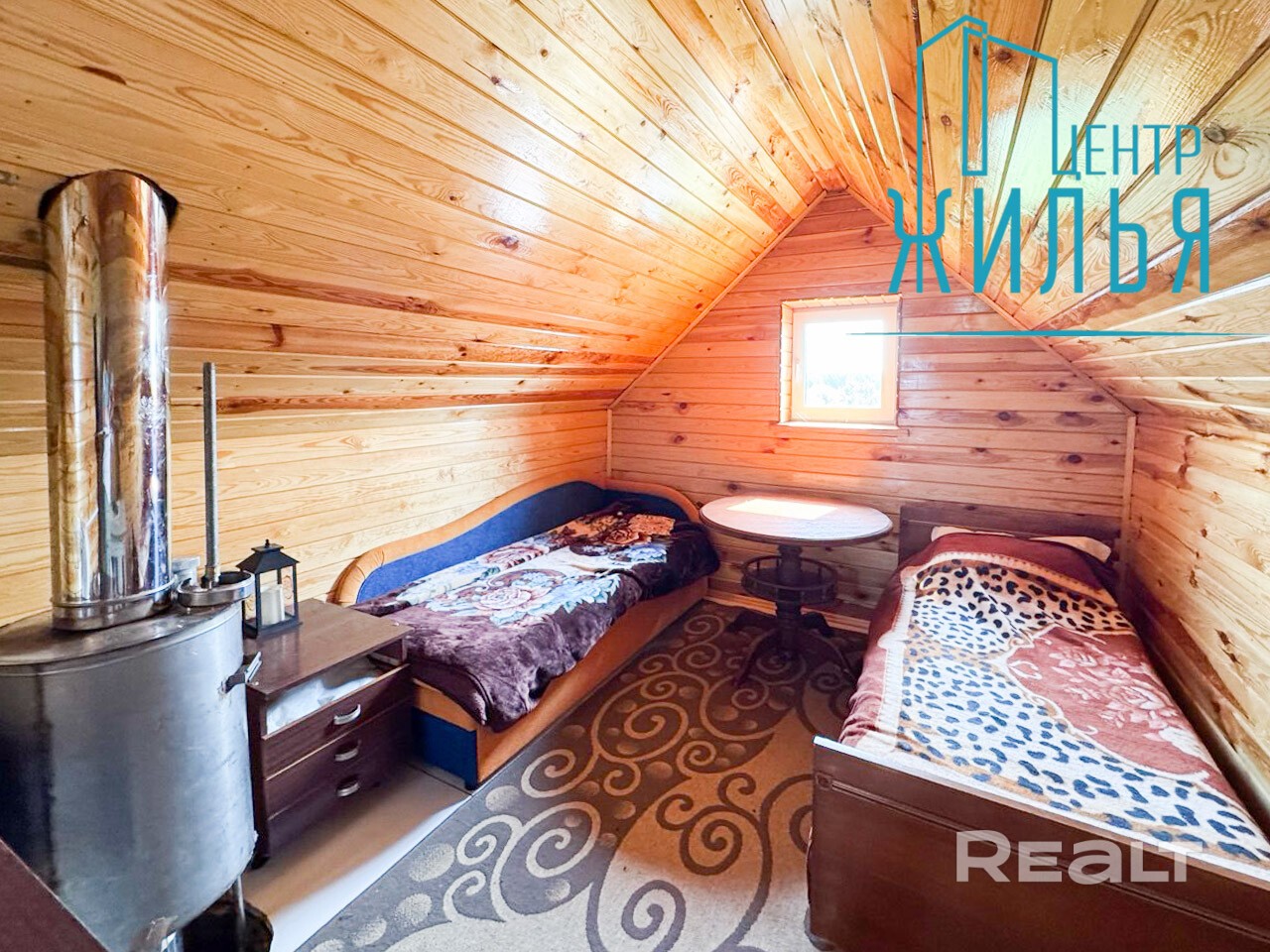 Баня 2015 года постройки, 2 этажа (мансардный) с пристроенным гаражом либо можно использовать как складское помещение. Площадь ~ 75 м2. Разведена и подключена электрика и сантехника.