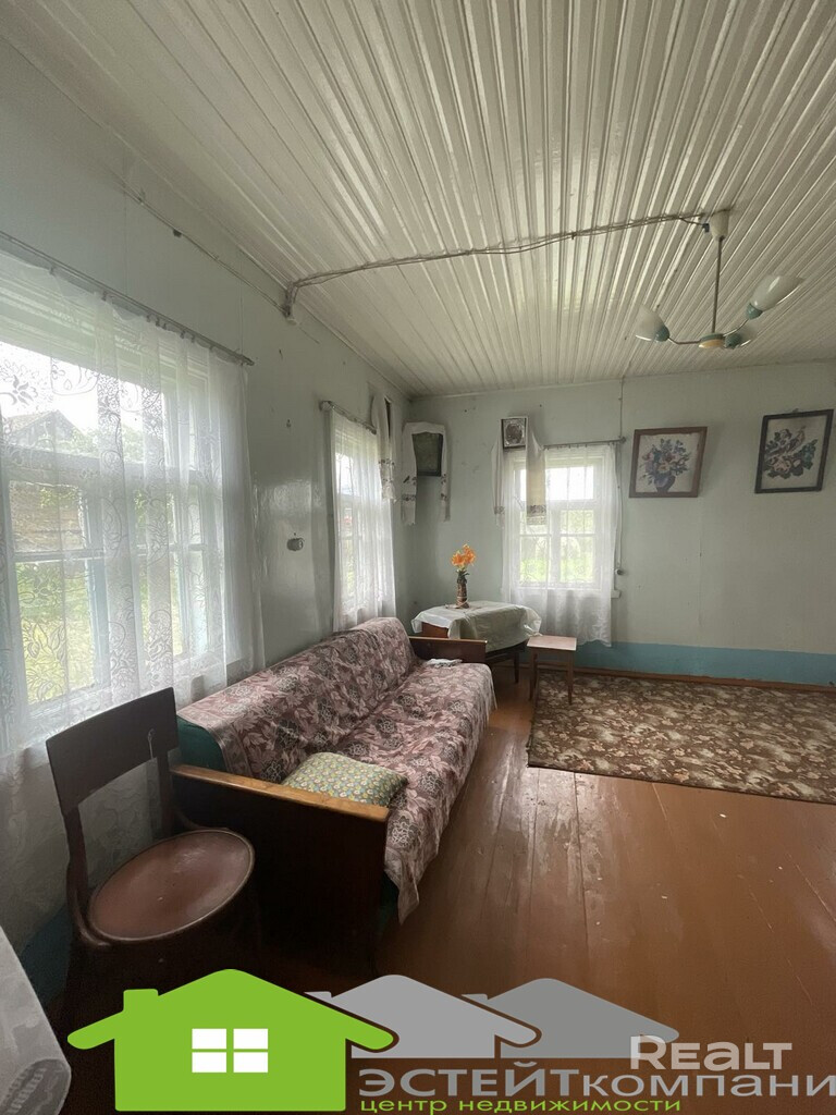д.Гнесичи,д.36 (Новогрудский р-н).Общая площадь 30,8 м.кв., жилая-21,0. Канализация местная, колодец на территории, отопление в доме печное. Большой участок 24 соток, участок огорожен. Река Неман протекает в пятидесяти метрах от дома, семьдесят метров от дома расположен пешеходный мост к Лавришевскому монастырю. Красивая природа, хорошие подъездные пути.