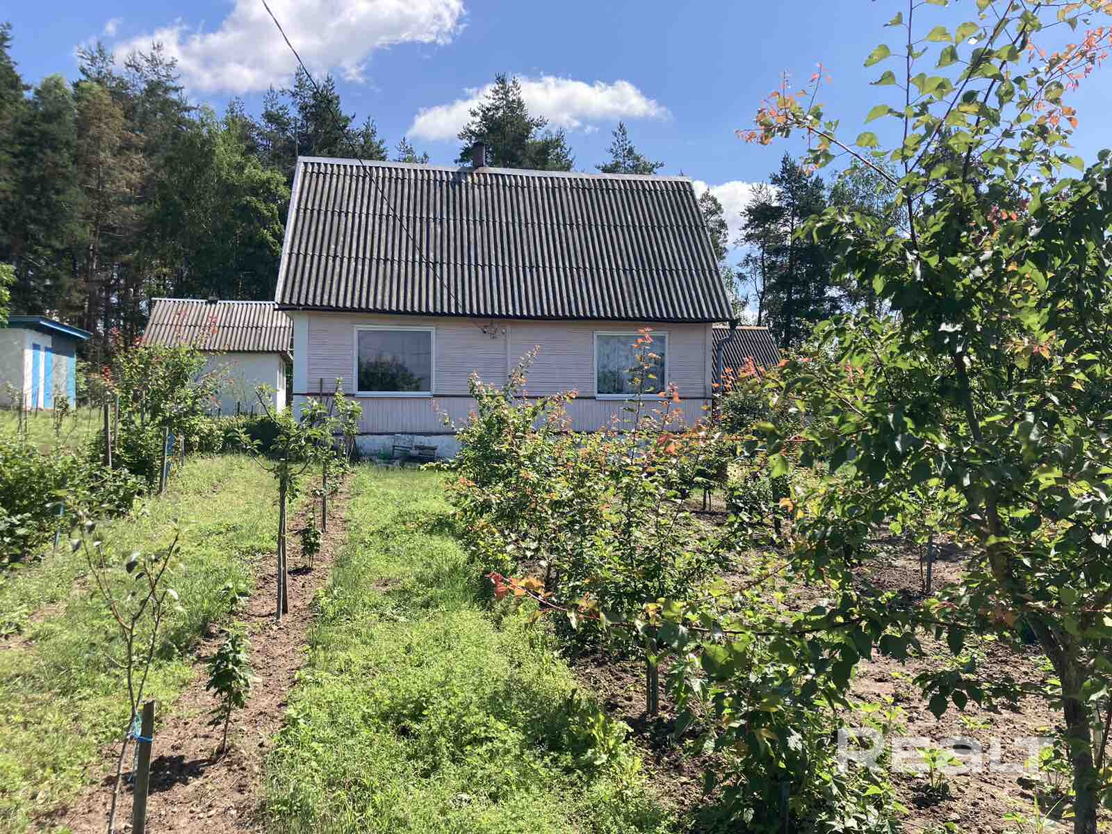 На участке имеется шикарный сад с плодовыми кустами и деревьями: яблони, груша, абрикос. слива, грецкий орех ,вишня .смородина, малина, виноград двух сортов. Участок ровный, состоит из 2 участков, по периметру огорожен металлической сеткой на металлических столбах, есть металлические ворота и калитка.