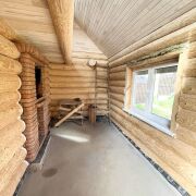 Дом двухэтажный с мансардой и баня, сруб дома и бани из северной сосны ( зимняя рубка)под чистовую отделку. Бревно от 26 до 50см в диаметре, обработан снаружи и внутри пропиткой Тикурилла первый этаж – утепление и черновая стяжка, потолки подшиты доской, разведена вода, канализация и вентиляция, второй этаж потолок подшит плитами ЦСП, дощатый пол, окна зашиты плёнкой, подведена канализация к санузлу. В бане разведена вода и канализация, обшита полностью мансарда, вставлены окна и входная дверь, установлена печь, топка из комнаты отдыха, для парилки закуплено 200 кг камней обваленного жадеина, пол: утепление и черновая стяжка. Хозпостройка в процессе окончания, стены из колотого камня, под всей постройкой подвал, отдельный вход, останется доделать крышу, двери окна. На участке имеется скважина 95метров и колодец более 15 колец. Ограждение по всему периметру из металлоштакетника, автоматические раздвижные ворота с итальянским мотором.Торги.Быстрый выход на сделку.
