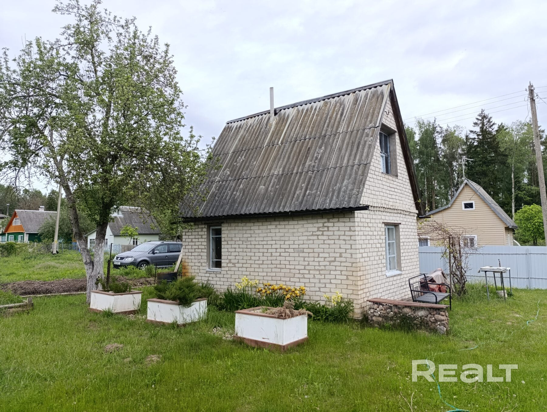 Садовый домик расположен на земельном участке площадью 5,9 сотки принадлежащем на праве частной собственности. Участок благоустроен, огражден по периметру (металопрофиль, сетка-рябица), имеются откатные ворота. Домик щитовой, обложен кирпичом площадью 25 кв.м., комната на мансардном этаже, пристройка. На участке построен кирпичный сарай, благоустроенный туалет.