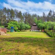 Большой участок 12 соток в частной собственности. Ухожен, огорожен со всех сторон. С двух сторон лес – отличные ягодные и грибные места. Сразу за участком протекает небольшая речка Кусенка.