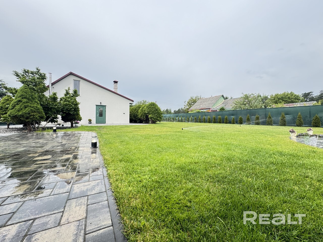 Современные технологии не остались в стороне: система "умный дом" позволит вам управлять освещением и автополивом прямо с телефона. Капельный полив туй и откатные ворота обеспечат комфорт и безопасность.