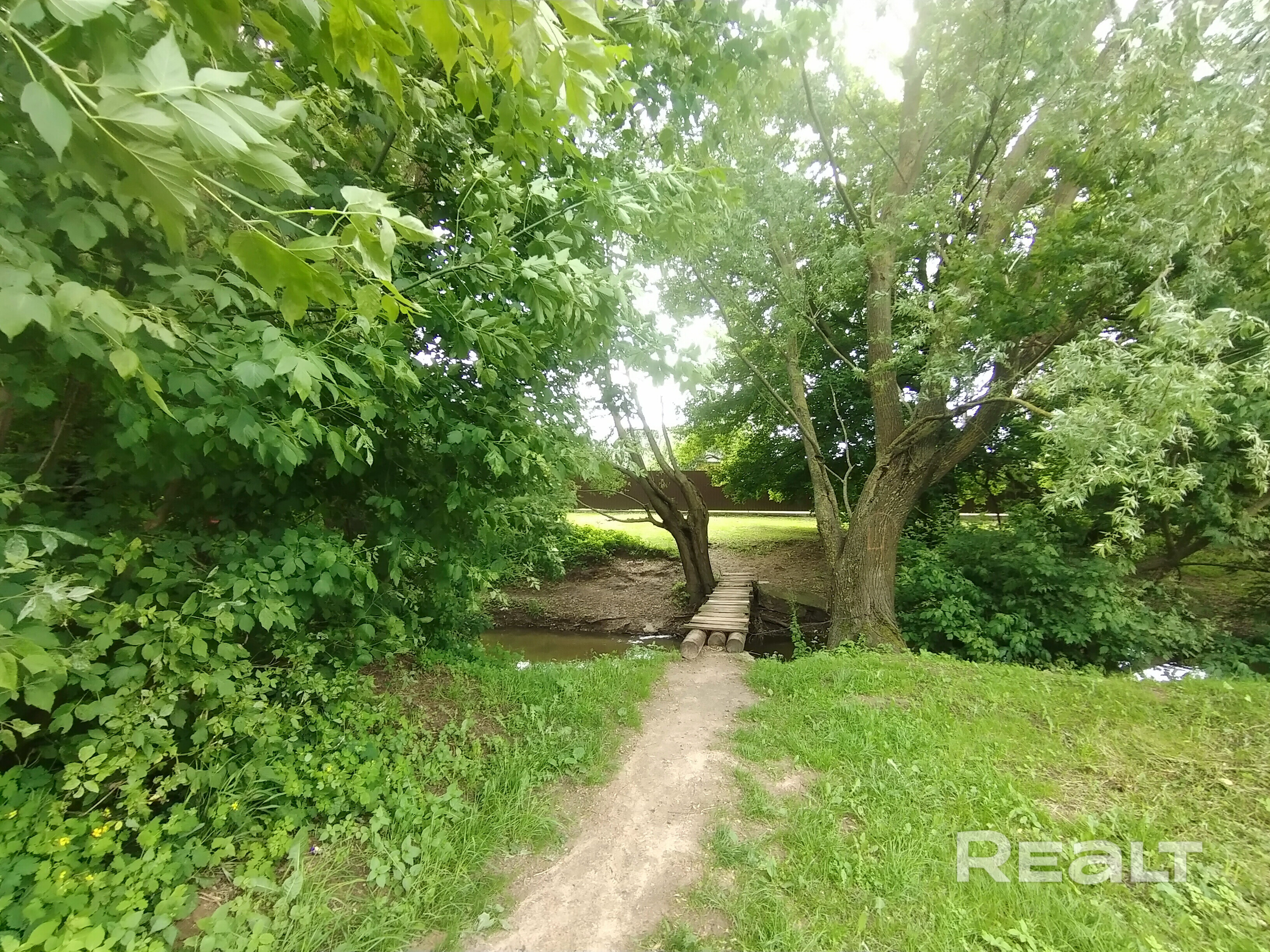 Рядом в домом небольшой зеленый парк с протекающей маленькой речкой Рута.