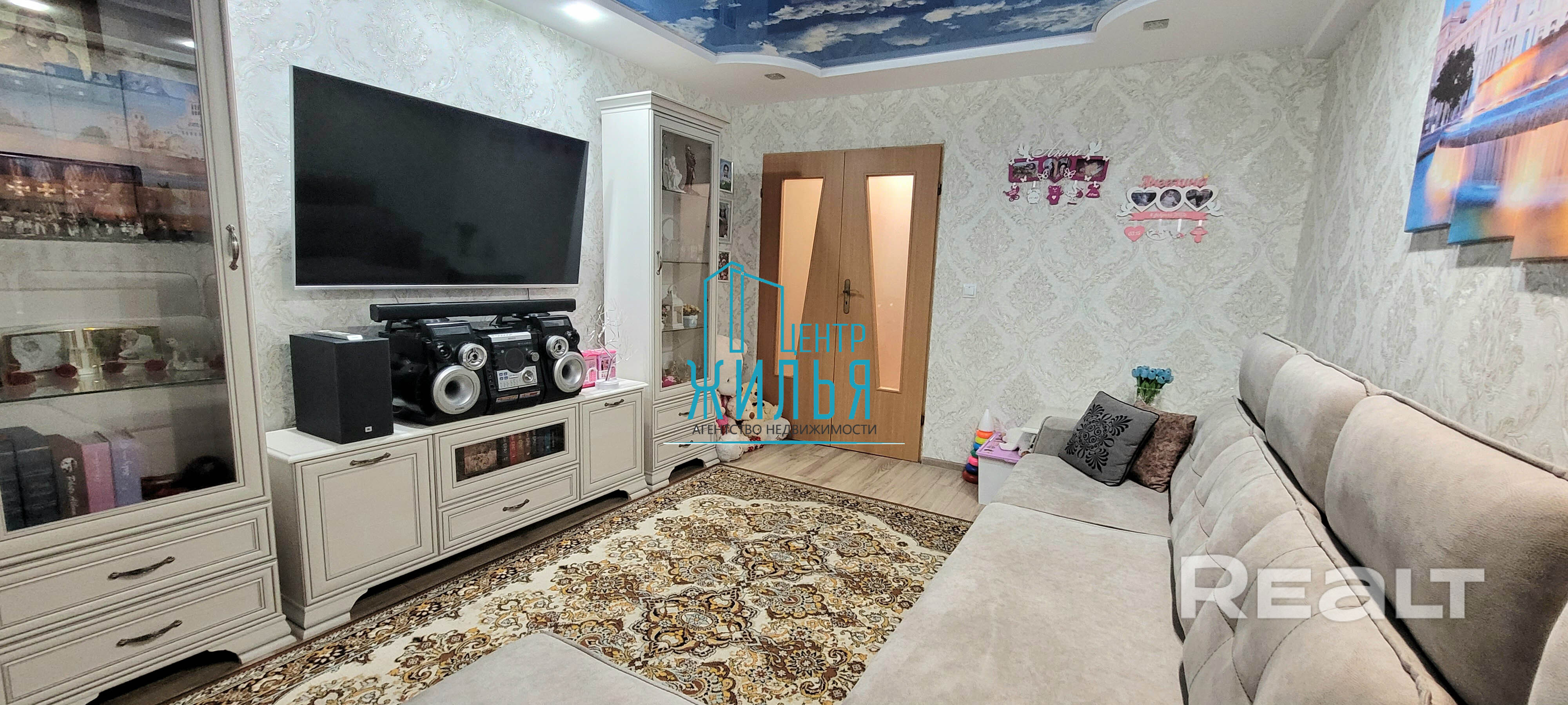 По всей квартире (кроме санузлов) натяжные потолки.