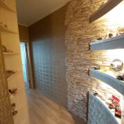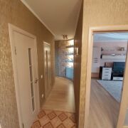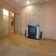 В квартире выполнен ремонт из высококачественных дорогих материалов в тёплых натуральных тонах: на полу ламинат, на кухне и в санузлах — керамическая плитка, стены отделаны декоративным камнем. Электрокамин добавляет не только душевного тепла. Утеплённая и застеклённая лоджия - дополнительное пространство для релакса.