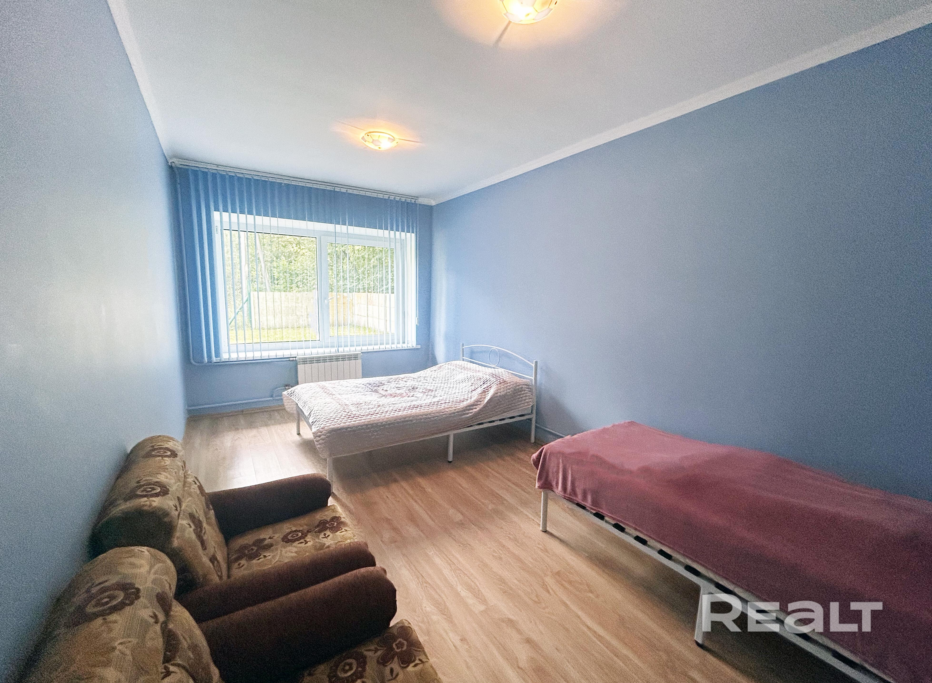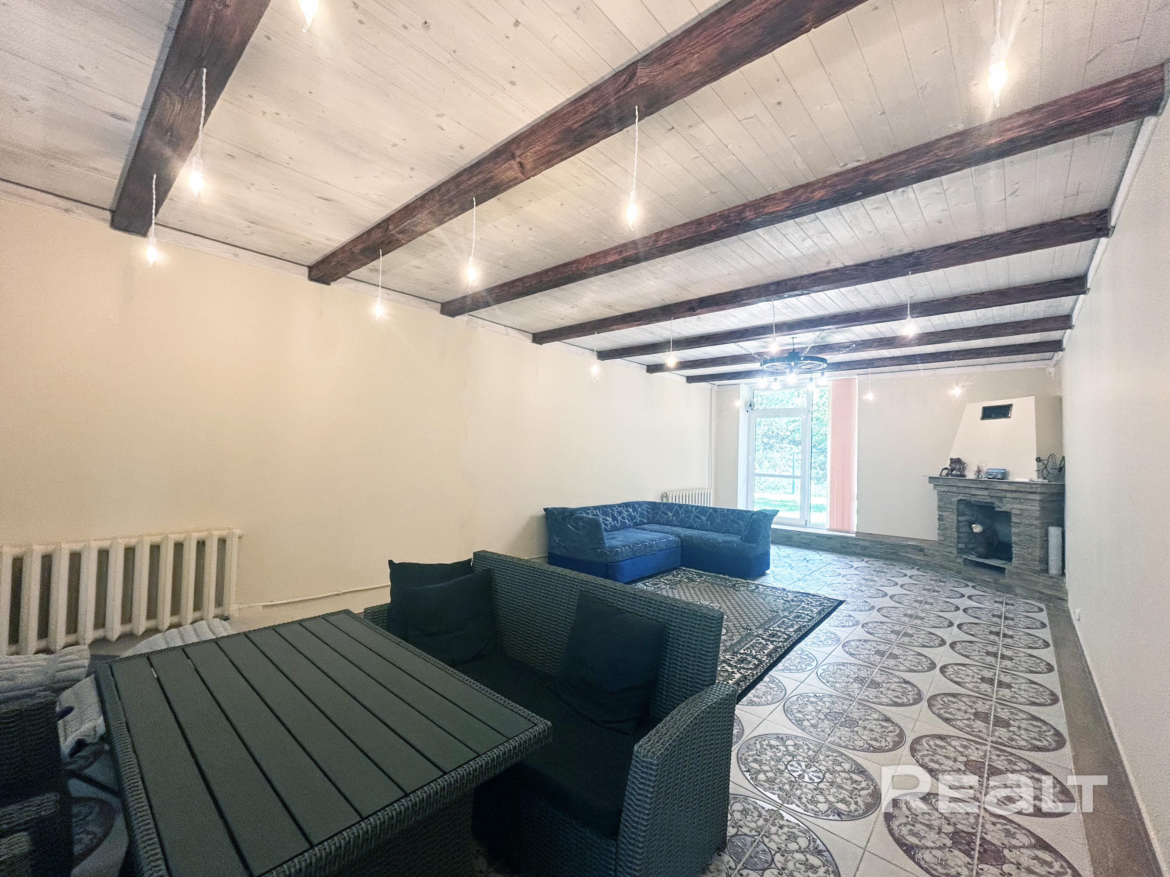 Дом одноэтажный, разделен на два изолированных помещения. В каждом помещении отдельный вход, спальня, санузел. Всего в доме две спальни, большая гостевая комната с камином, три санузла, просторная кухня, топочная. Выполнен современный ремонт. Стены оштукатурены и окрашены. Полы – плитка, ламинат. Санузлы облицованы плиткой.