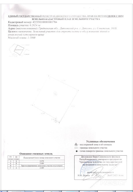 Гродненская обл., Дятловский р-н, г.Дятлово, ул.Советская, 101Б.