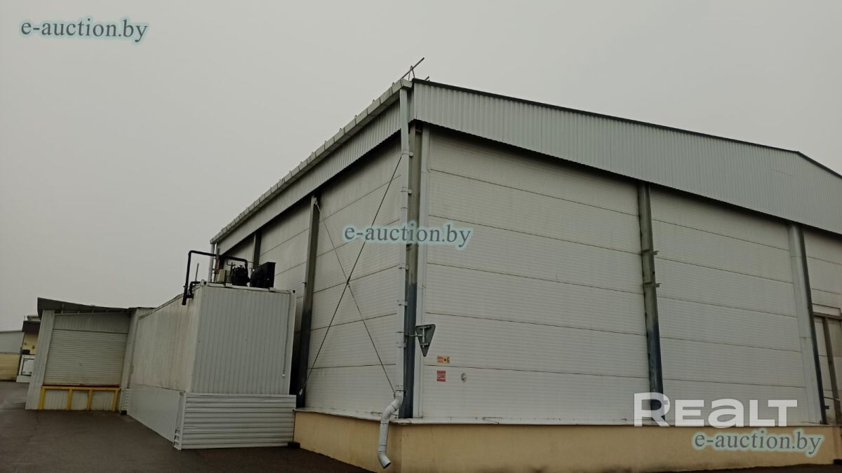 Реализуется с торгов! на e-auction.by. Назначение: Здание специализированное складов, торговых баз. Пищевое производство, хранение,заморозка. Составные части и принадлежности: а-Рампа,Холодильное оборудование (агрегат холодильной серии XAC 4-H16CS/Б), автоматическая машина для производства пельменей (Италия), мойка. Пол-плитка,бетон. Водоснабжение, канализация-централизованное,двери-ПВХ профиль, металл. Полная информация, техпаспорт может быть предоставлена по запрос