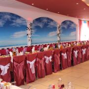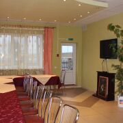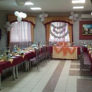 На территории комплекса работает кафе "Белые паруса" на 60 посадочных мест, имеется бар и два банкетных зала на 30 и 150 человек.