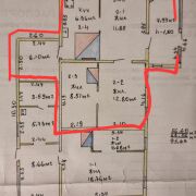 Продается квартира в двухквартирном жилом доме (54,21 м кв.) и 1/2 земельного уч-ка общей пл. 0,2101 га. Планировка квартиры на фото обведена красным маркером: веранда 7,99 м кв., светлая гостиная 11,85 м кв., зал 12,8 м кв., уютная спальня 8,51 м кв., кухня 6,96 м кв., кладовая 6,96 м кв., погреб. Вода (без канализации), подведен газ, электричество. На кухне печь, в спальне грубка. Дом легко отапливается. На участке есть баня, сарай и фрукт. сад. Недалеко от дома магазин "Родны кут".