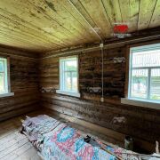 Дом бревенчатый, обложен кирпичом. Новая печка. Дом протапливается, участок покошен. Рядом колонка. Проведено электричество.