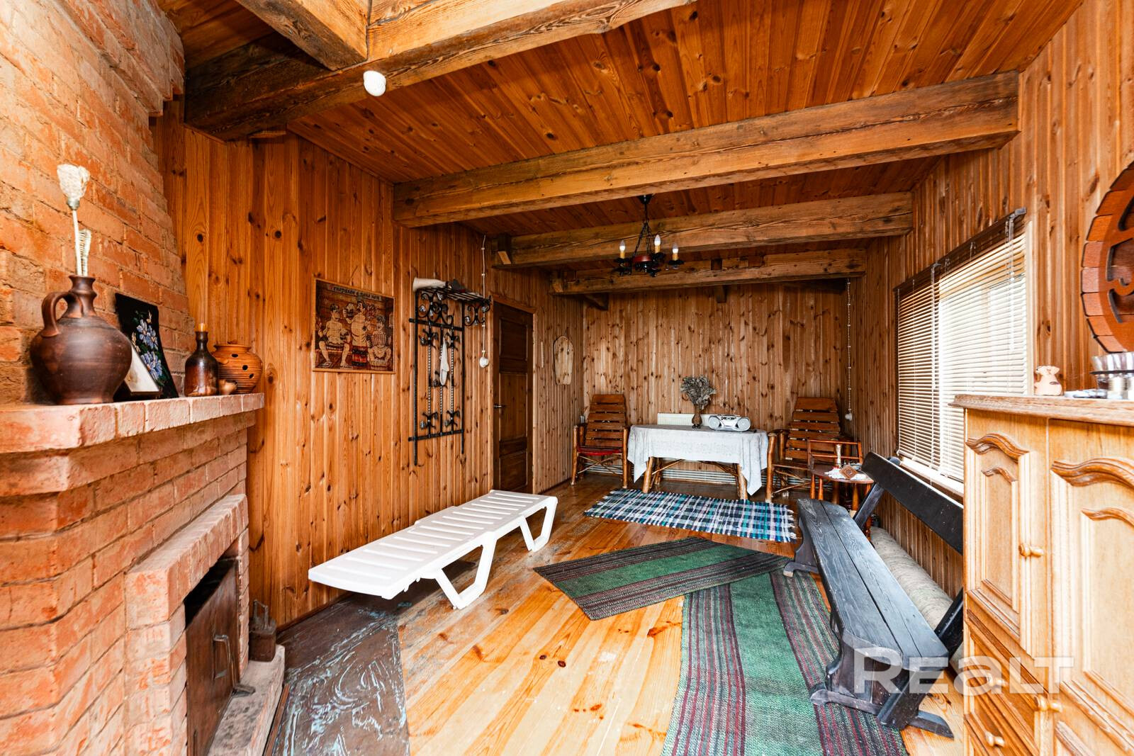 Дом состоит из просторной гостиной с камином, террасы, шести больших жилых комнат, кухни, гардеробной, двух санузлов, топочной, большой гостевой парковкой перед домом. В доме находятся все необходимые коммуникации, включая электричество, отопление, воду, канализацию и газ.