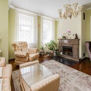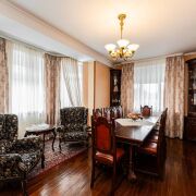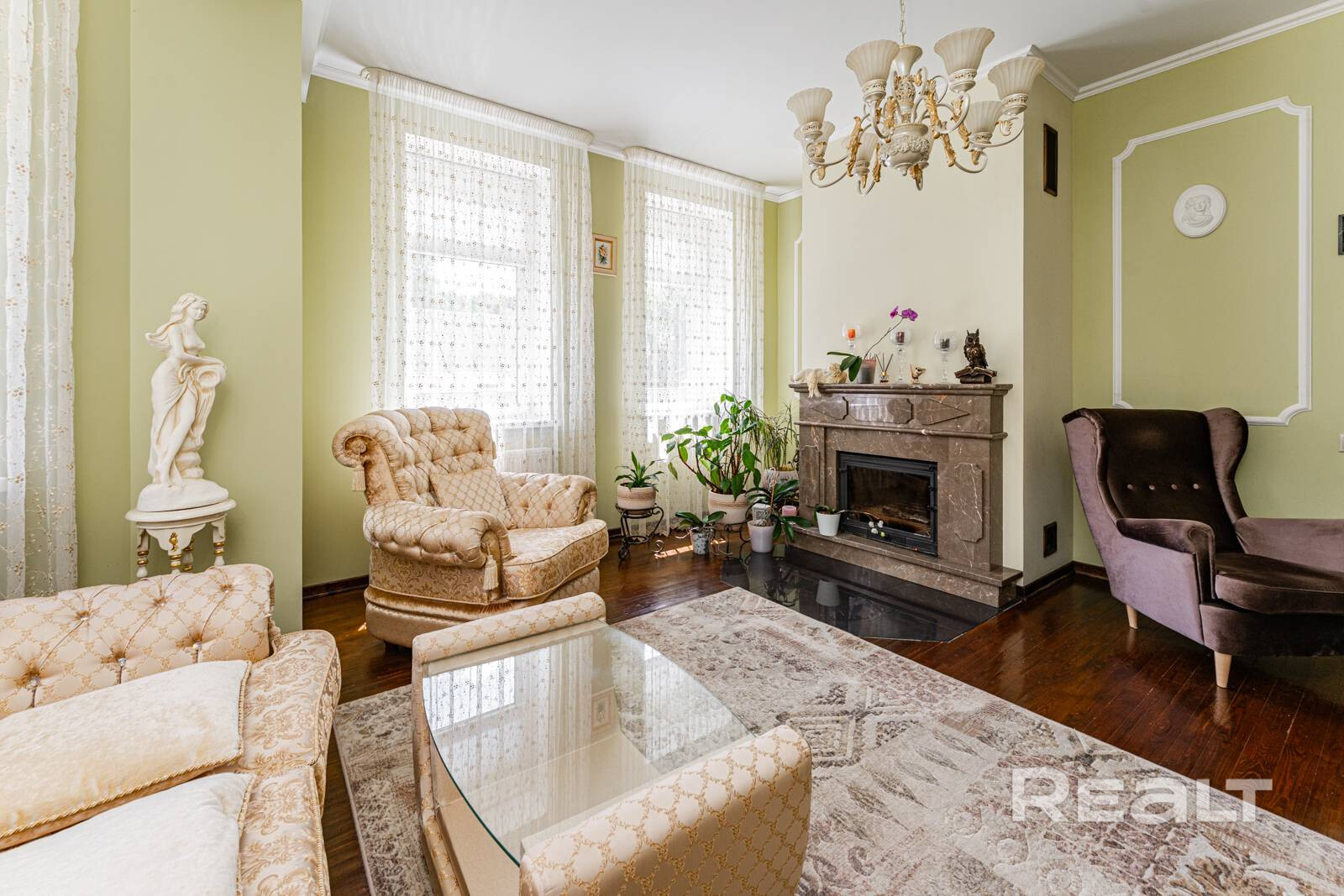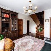 Трехэтажный дом построен по индивидуальному архитектурному дизайн-проекту и отличается продуманной планировкой и высокими потолками.