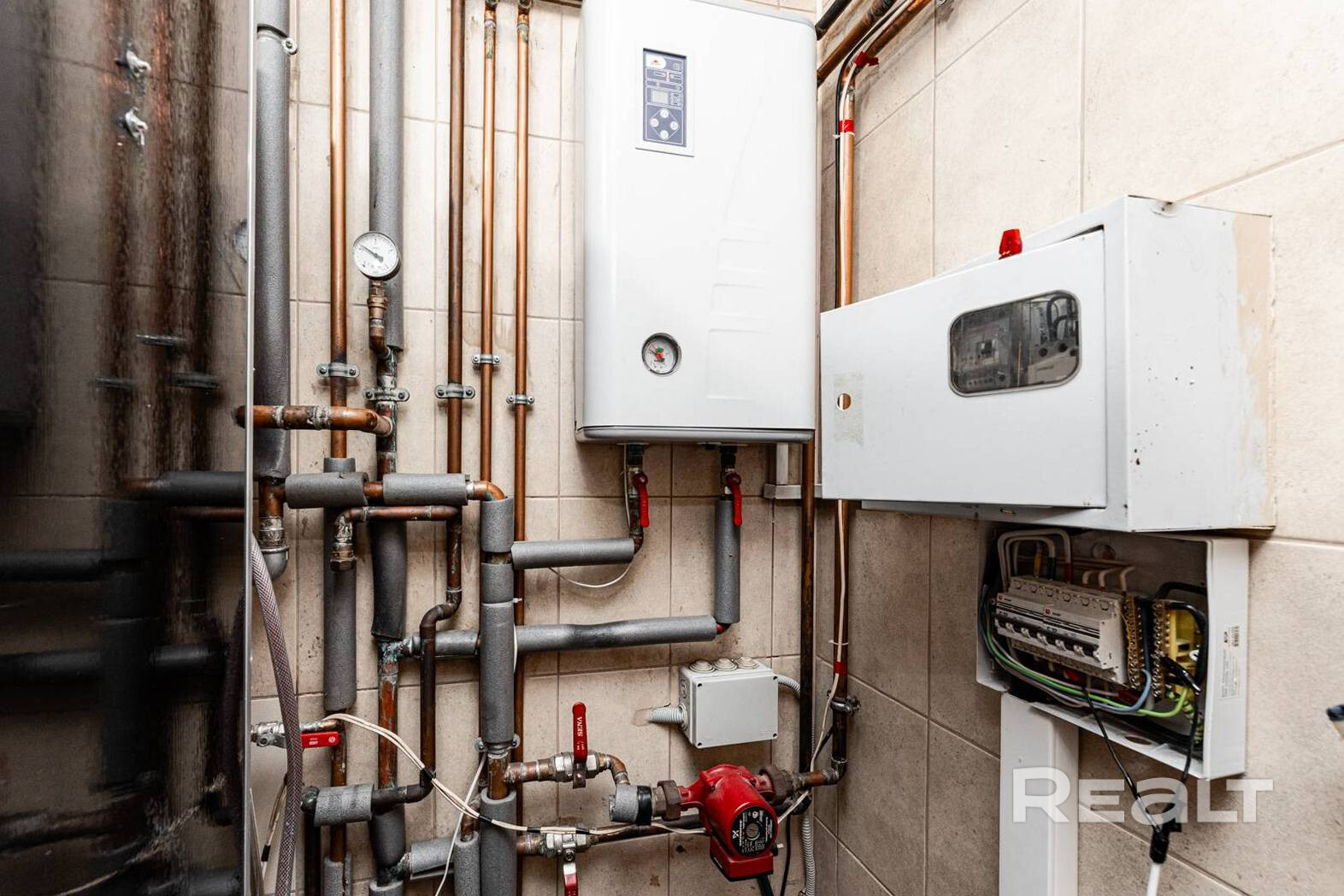 - Современная топочная, электрокотел, собственная скважина, местная канализация, радиаторы, тёплые полы на кухне, санузле и в фойе.
