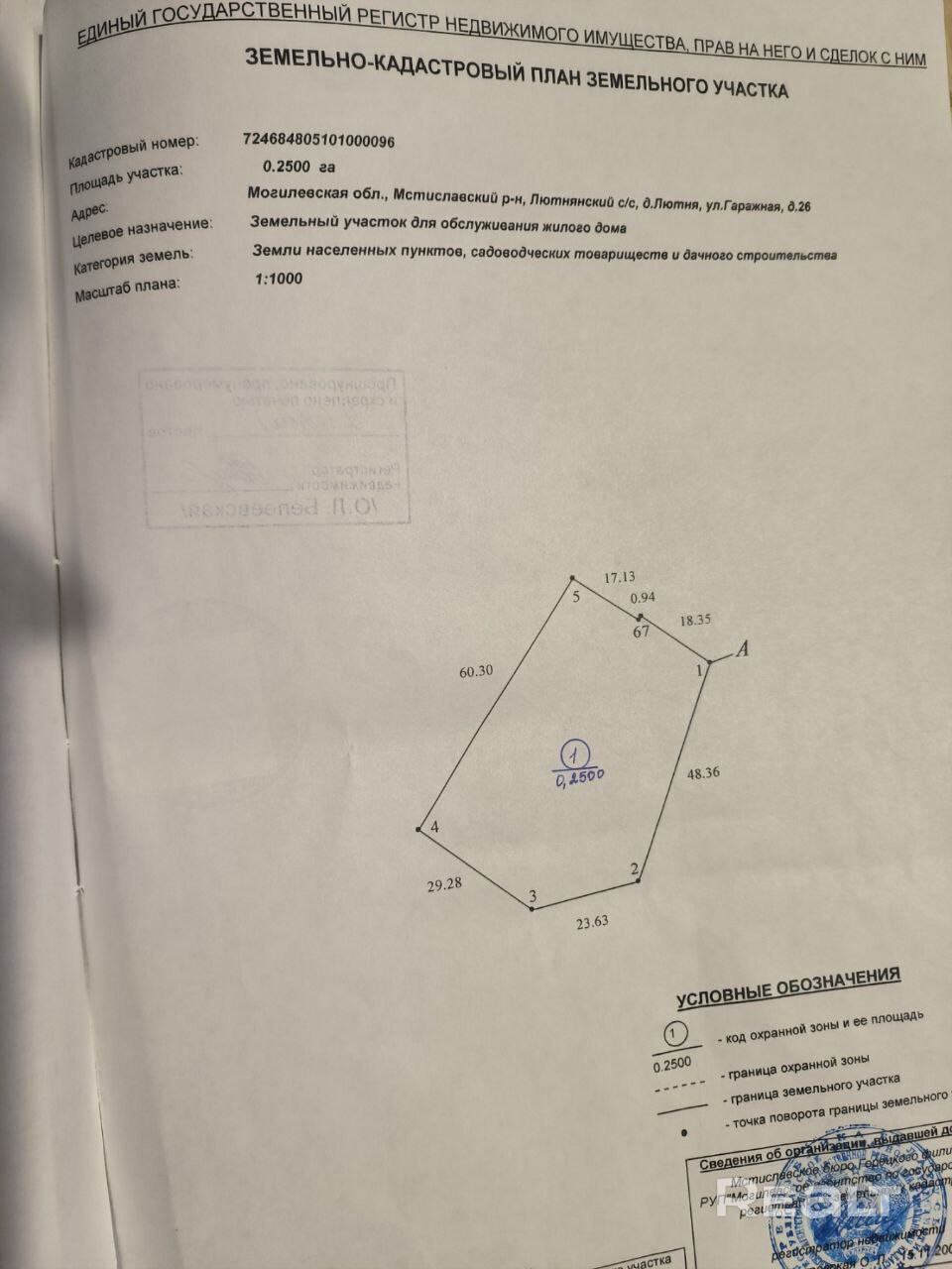 - Площадь участка