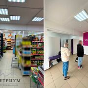 Объект поделен на четыре торговых помещения с отдельным входом с улицы для каждого. Внутри помещений выполнен лаконичный ремонт в светлых тонах: плитка ГРЭС, потолки Armstrong, стены оштукатурены и окрашены. Есть разгрузочная рампа, оборудованы санузлы для каждого помещения, проведены все необходимые коммуникации.