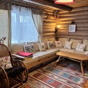 Все в доме сделано из натуральных материалов, 4 комнаты ( 2 односпальные кровати и 3 двухспальные), кухня, спутниковое ТВ, бесплатный вай-фай.