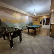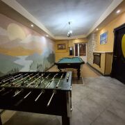 К вашим услугам: большой каминный зал с танцполом, большой банкетный зал на 50 человек. Крытая беседка с мангалом. Для активного отдыха бильярд пул (американка), дартс. Для размещения гостей предоставлены 5 отдельных комнат (до 24 спальных мест). Для любителей горячего пара сауна на дровах с бассейном и обливным ведром для желающих взбодриться.