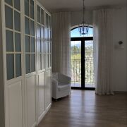 Просторная вилла площадью 350 кв.м. в два уровня. 5 спальных комнат. На первом этаже расположены просторный салон с камином, диванной зоной, гостевая спальня, кухня столовая с выходом на летнюю террасу, зона SPA c большим плавательным бассейном и сауной на дровах, гостевой санузел.Второй уровень отведен под семейные спальни. Четыре светлые спальные комнаты с большими двуспальными кроватями и потрясающим видом на лес.Просторная ванная комната.