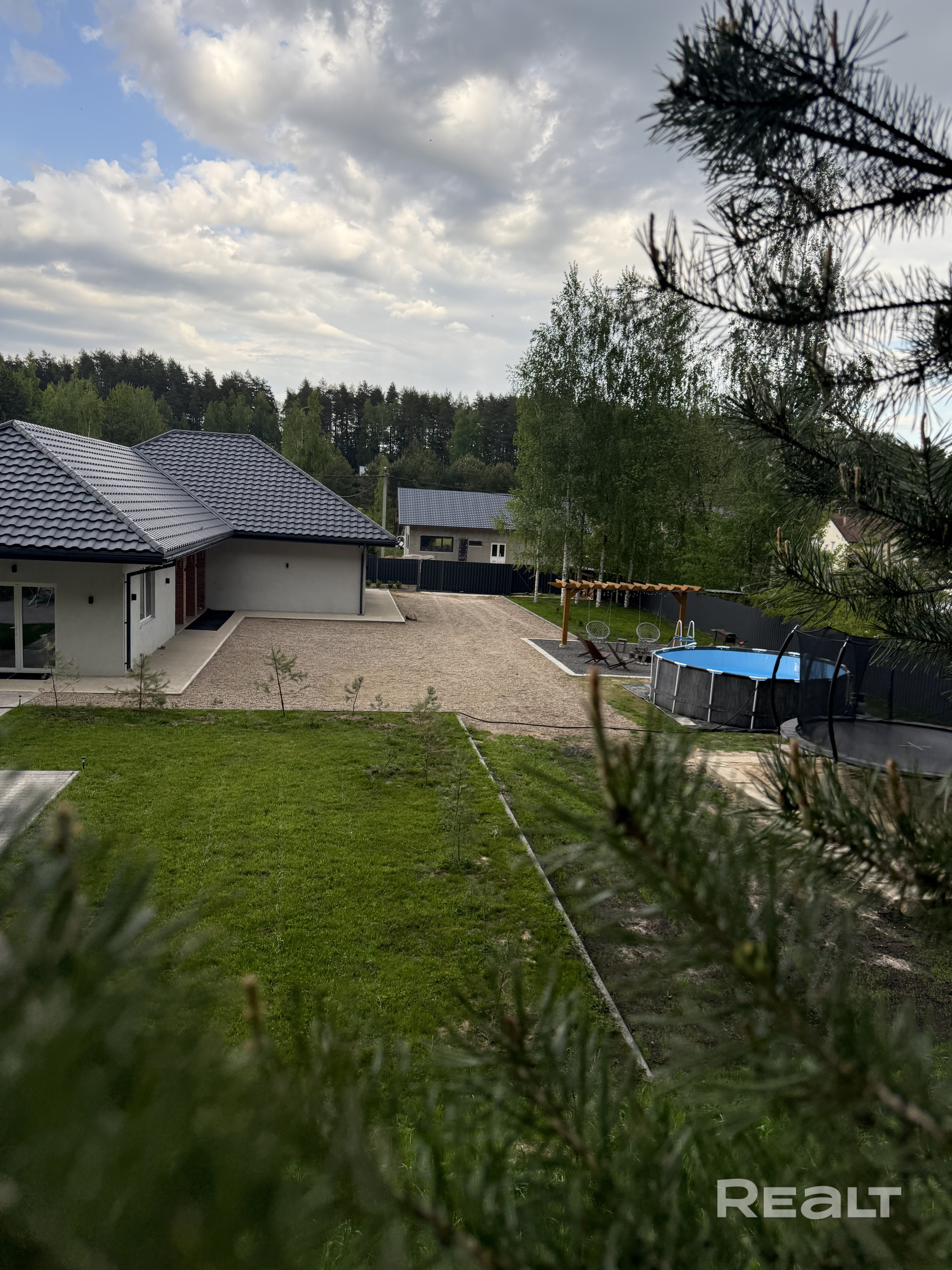 Дом с двумя изолированными комнатами на первом этаже и большой комнатой на мансардном( втором)этаже, а также шикарной просторной кухней-гостиной.