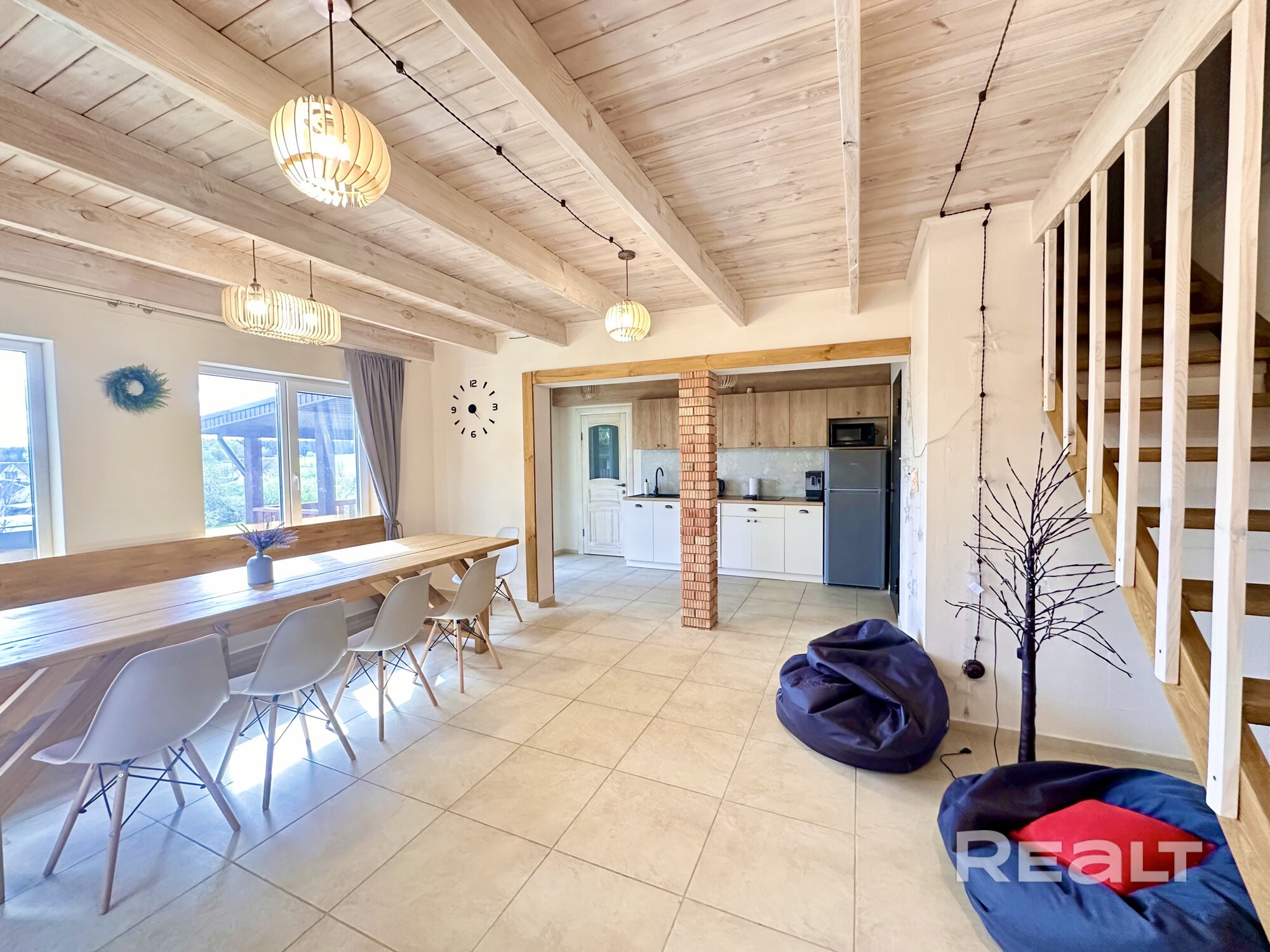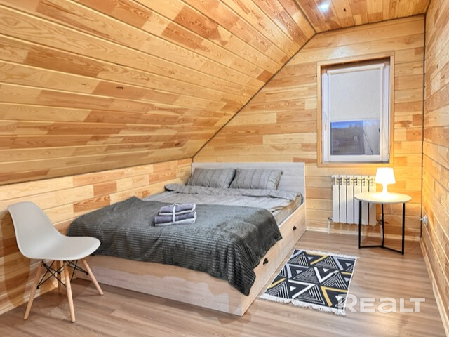Пн-чт:550р, пт:650р, сб: 900р. вс: 600р. 9-10чел+100р; 11-12чел+200р. Наш дом в 10 мин от Минска! На 1 этаже комната отдыха, большой стол,караоке.Вся посуда и техника (кофемашина,микроволновка,мангал и др.). Тёплый бассейн,нырнув в который внутри дома, можно вынырнуть на улице! 2-й каркасный бассейн на улице,шезлонги. Бадминтон. Настольный теннис. 2-й этаж: 3 спальные комнаты. Баня оплачивается отдельно.