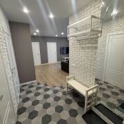 Удобная гардеробная комната предоставляет достаточно места для хранения одежды и аксессуаров, что позволяет поддерживать порядок и организованность в квартире.
