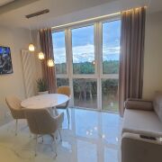 1-комнатная квартира с прекрасным видом на парк Челюскинцев, с изолированной комнатой с кроватью и встроенной мебелью, кондиционером, встроенная кухня с свч, посудомойкой, духовым шкафом, индукционной варочной панелью, ванная комната с тропическим душем, стирально-сушильная машина. Кухня-гостинная с телевизором и диваном, теплый пол. Все для красивой и удобной жизни.