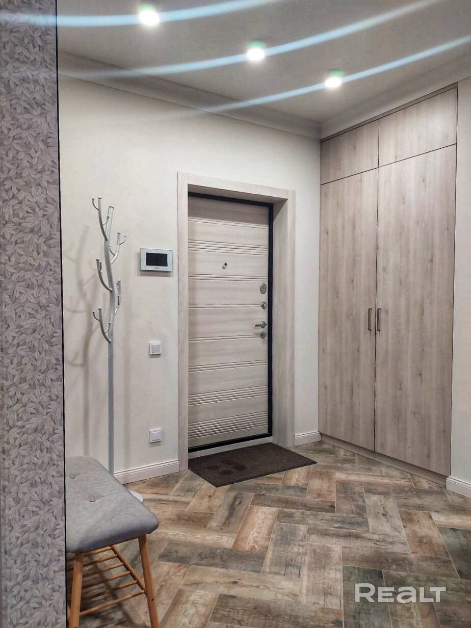 Предлагается в аренду по договору на длительный срок современная евродвушка, площадью 47 м² (5 этаж из 25) в жилом комплексе «Vogue» г. Минск, по адресу Макаенка, 12К. Квартирное пространство включает меблированные гостиную-студию с кухонной зоной, кондиционером, санузел с ванной, душем и стиральной машиной, изолированную спальню с выходом на лоджию. Раздельные жилые комнаты оснащены панорамными окнами, выходящими на восток. Дизайн выполнен в стиле IKEA со встроенными вместительными шкафами.