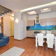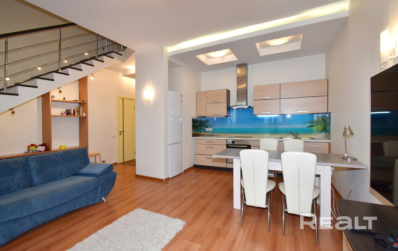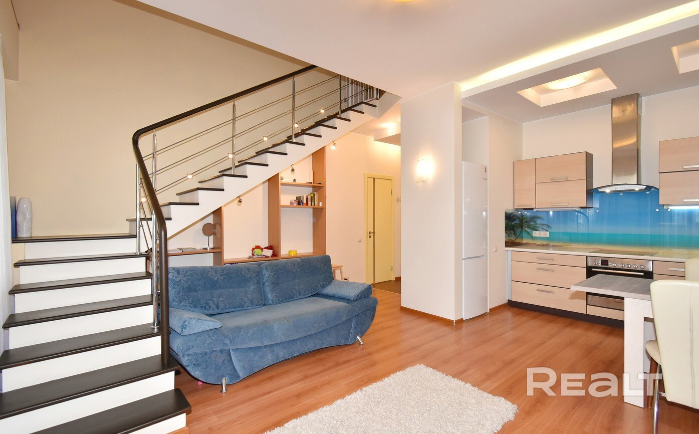 На длительный срок сдается 2х-уровневая квартира с 2 комнатами. Квартира укомплектована всей необходимой мебелью и техникой, две застекленные лоджии, два санузла. Установлен бойлер.
