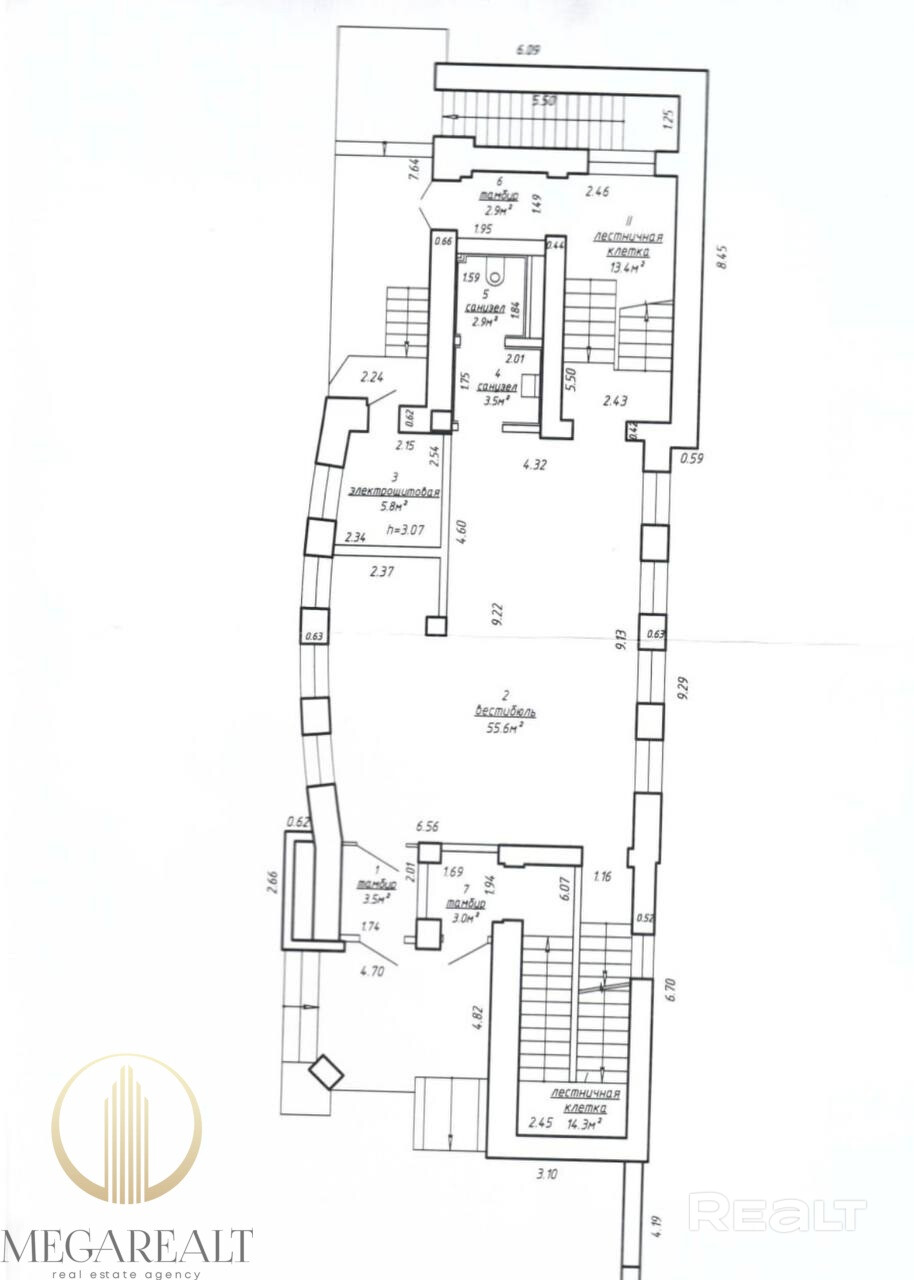 В помещения выполнен современный ремонт.  Высота потолков на 1-ом этаже - 3.07 м., в коридоре - 2.34 м. Офис выполнен в системе open-spase, имеет отдельный вход.