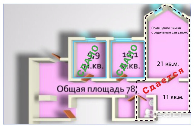 Сдам в аренду помещение 78 м отдельный вход ул. Интернациональная дом 35-2 Александровский сад . напротив Очага . По договору цена 1850 б.р..вместе с комуналкой .без Э.Э. . ПРИ УСЛОВИИ АРЕНДЫ ПОМЕЩЕНИЯ ПОЛНОСТЬЮ , при желании снять по комнатно ценна аренды обговаривается отдельно по каждому помещению. На планировке сдается все надписи СДАНО устарели . Планируемая сдача 1.10.25 г.
