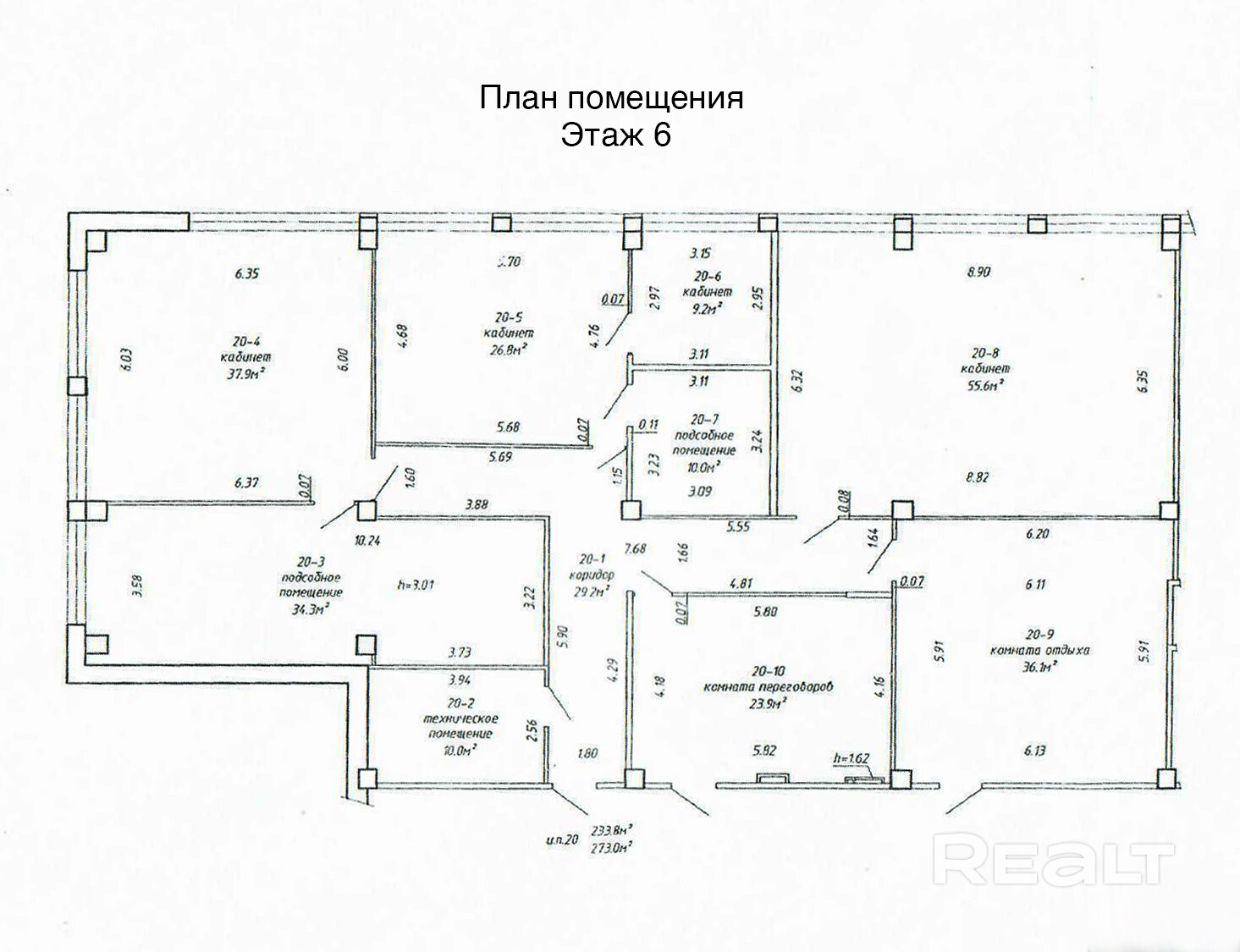 Офисное помещение на 6 этаже общей площадью 273м2.